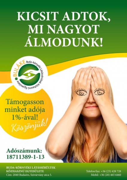 2005-től működik Budaörsön egyesületünk, a Buda-környéki Látássérültek Közhasznú Egyesülete, segítjük a hozzánk forduló látássérülteket és információval látjuk el a lakosságot érzékenyítő- és egyéb programjaink során, de évek óta töretlen népszerűségnek örvend az Egészségház által is ajánlott gyógymasszázs szolgáltatásunk is.