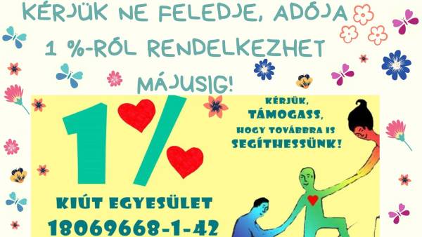 A 2018-as évre vonatkozó adó 1% felajánlásokból 71.225 Ft-ot kaptunk. Az összeget a tavalyi felzárkóztató, készség- és képességfejlesztő gyermekprogram sorozatunk és 25. Jubileumi Kiút Habilitáló Szocializáló Táborunk megvalóstására, gazdagítására használtuk fel.