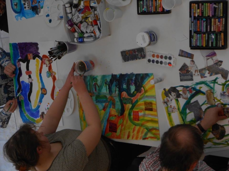 A Védett Átkelő projekt keretében, az alábbi folyamaton vehetnek részt: 15 hetes művészetterápiás csoportok, minden terápiás blokk lezárásaként rendezünk egy grafikai hetet. Itt különleges grafikai eljárásokat ismernek meg a résztvevők: monotípia, hidegtű, linómetszet, papírnyomat. A művészetterápiás csoportoknak májusban kiállítása nyílik az Átkelő Galériában.